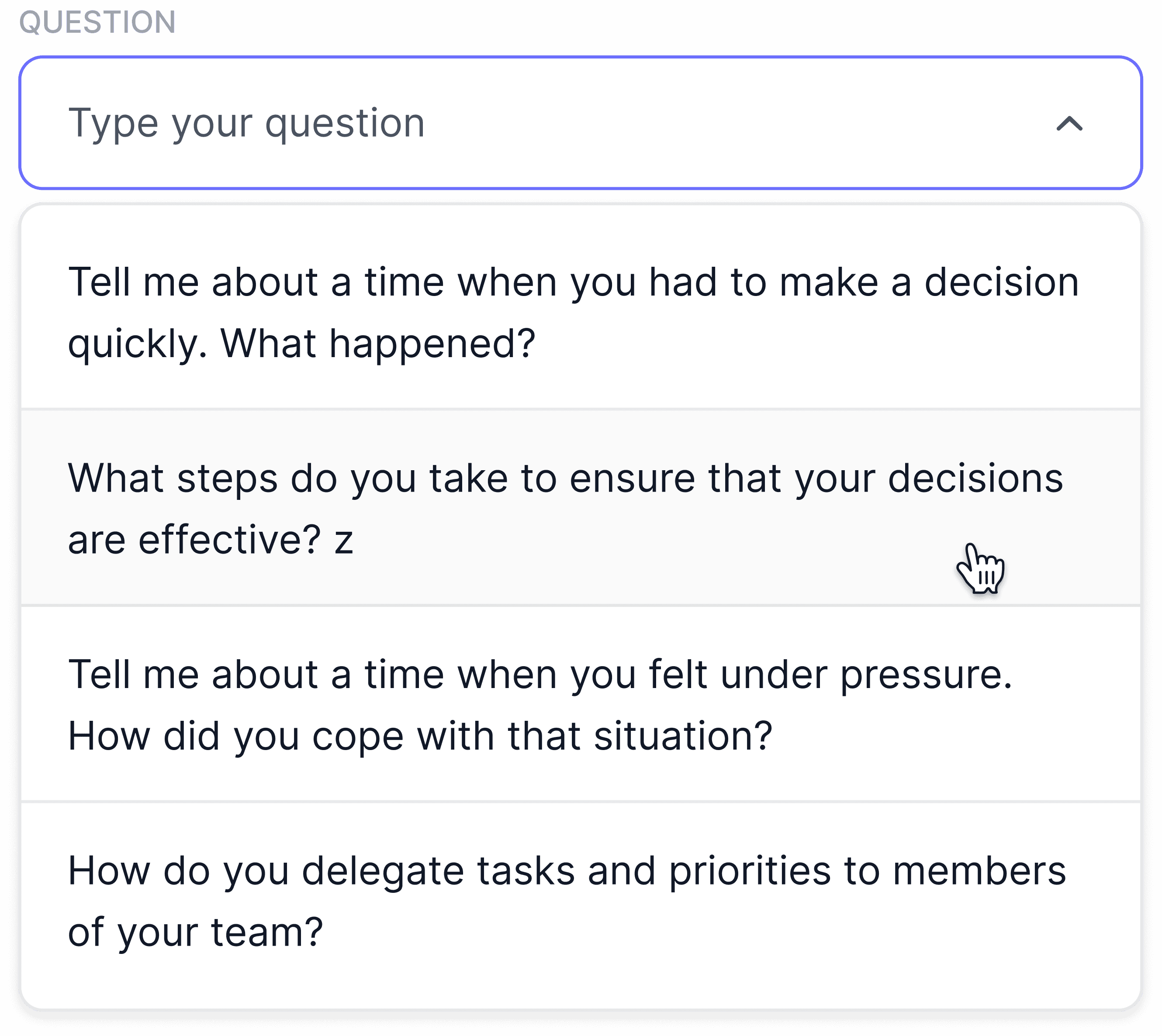 Users can select a preset question or write their own.