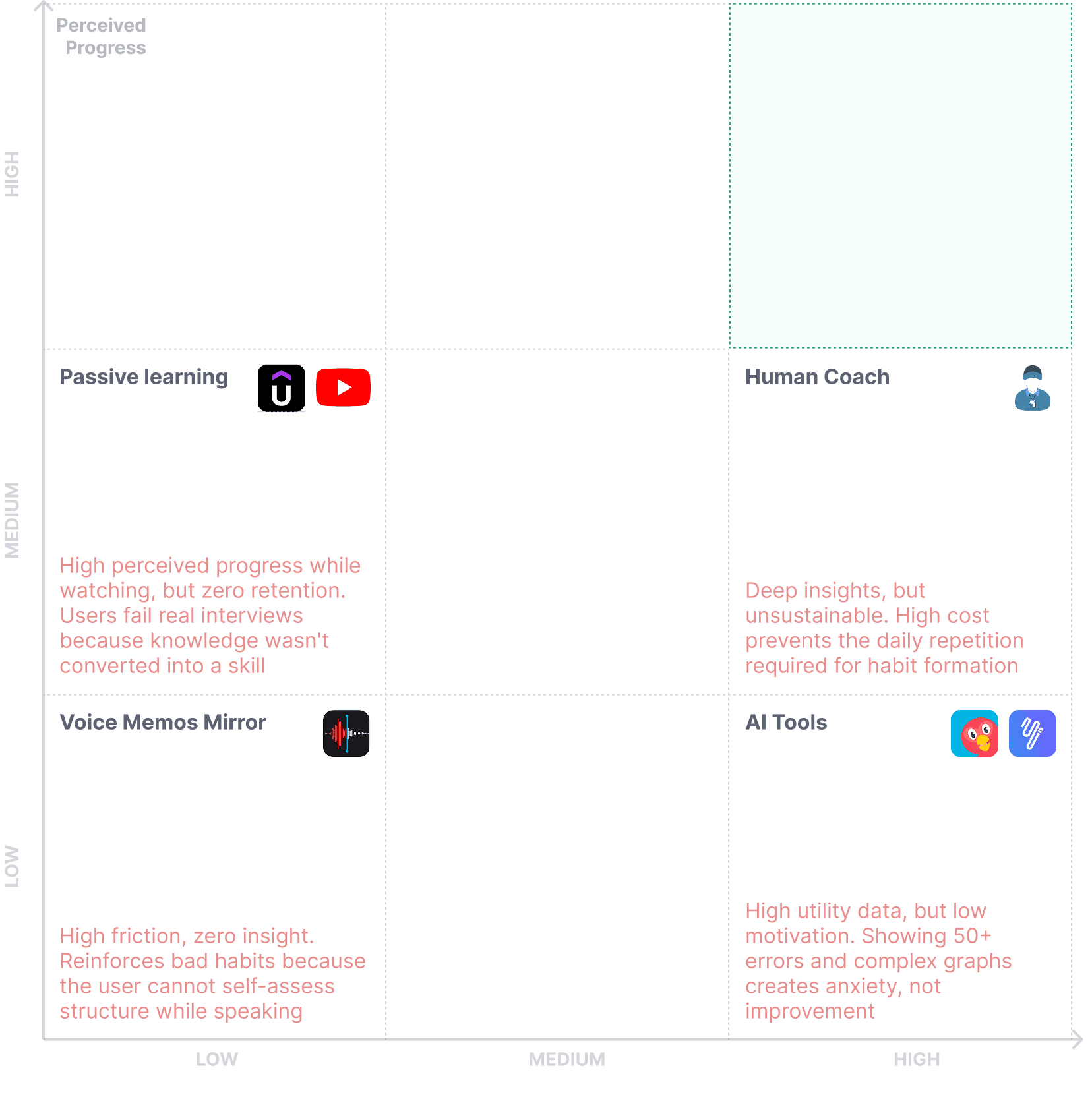 My core hypothesis was that by providing instant, structural feedback, the product could motivate users to iterate on their stories, turning vague answers into reliable reflexes.