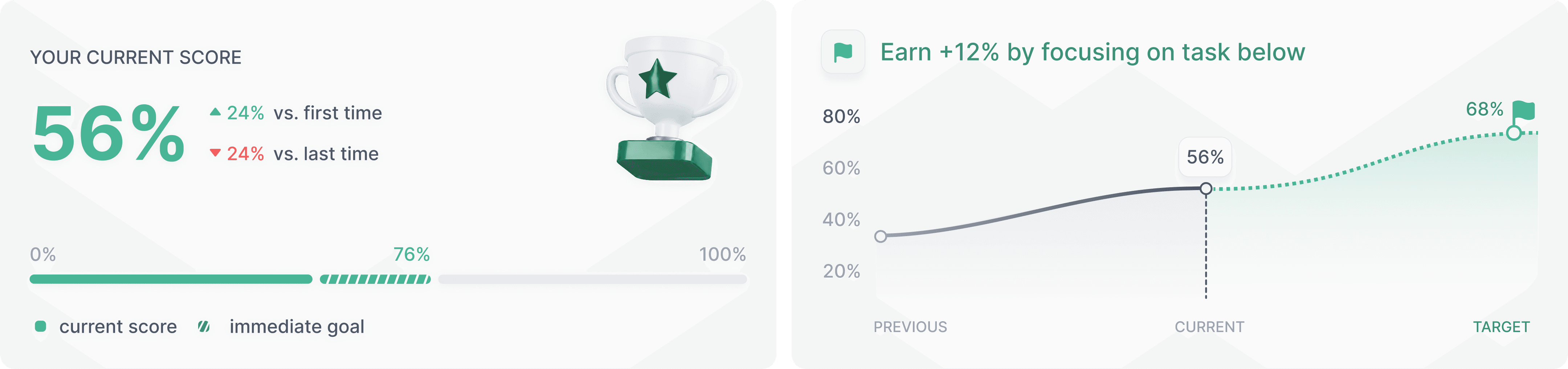 Instead of just showing past mistakes, the new graph projects the future. It promises: "Fix this one thing, and your score grows by 12%." This creates an immediate dopamine reward hook.
