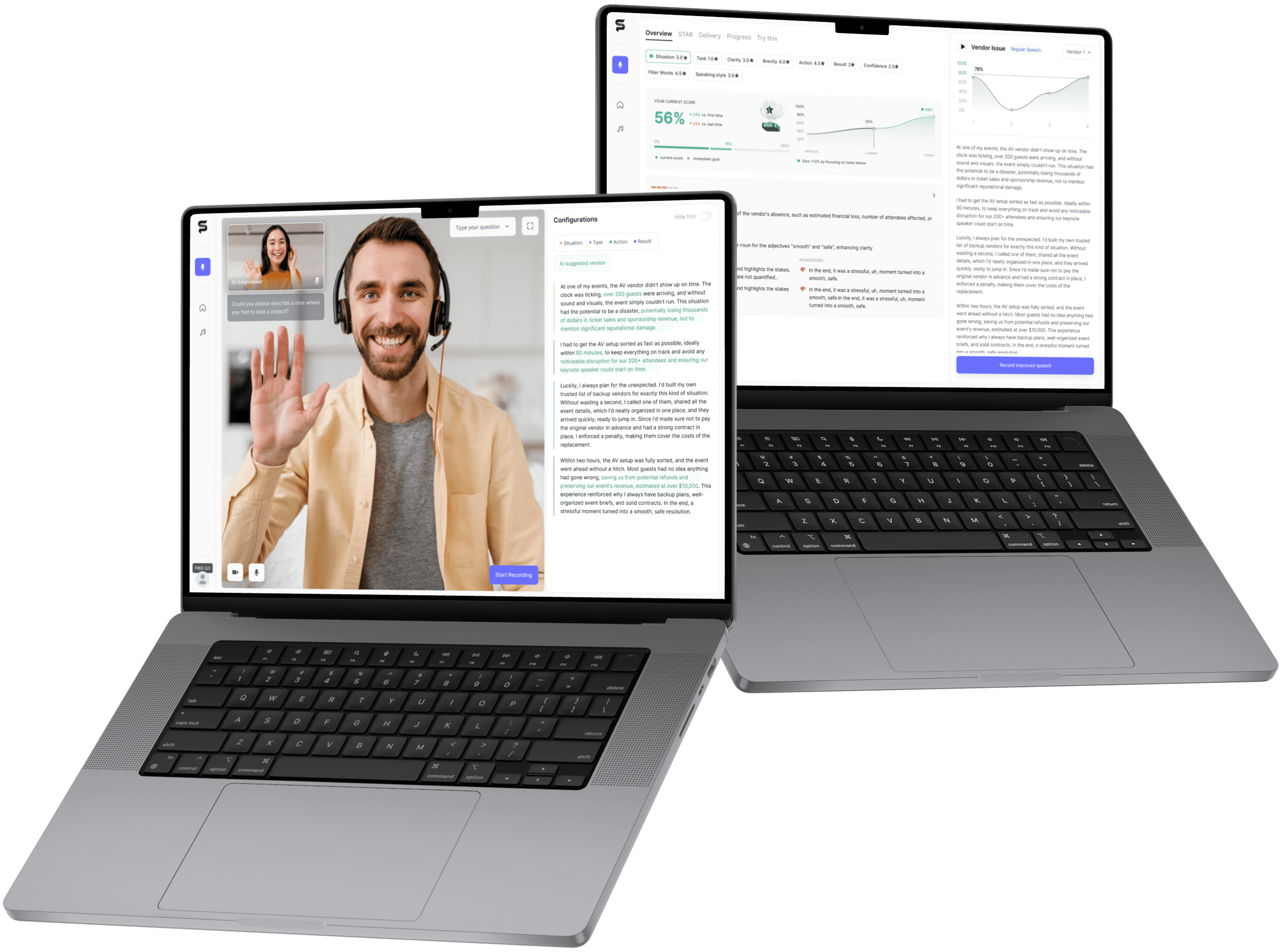 While the long-term vision includes sales pitches and public speaking, the MVP focuses on behavioural interviews for top-tier tech companies.