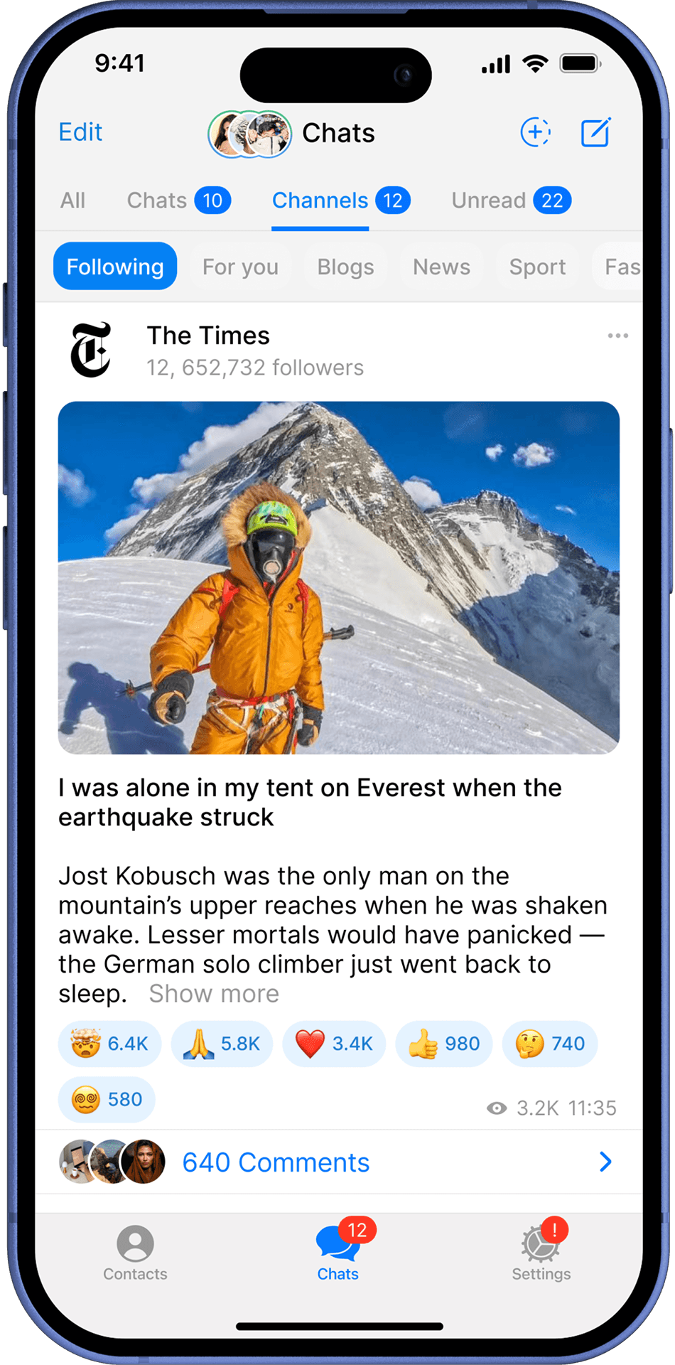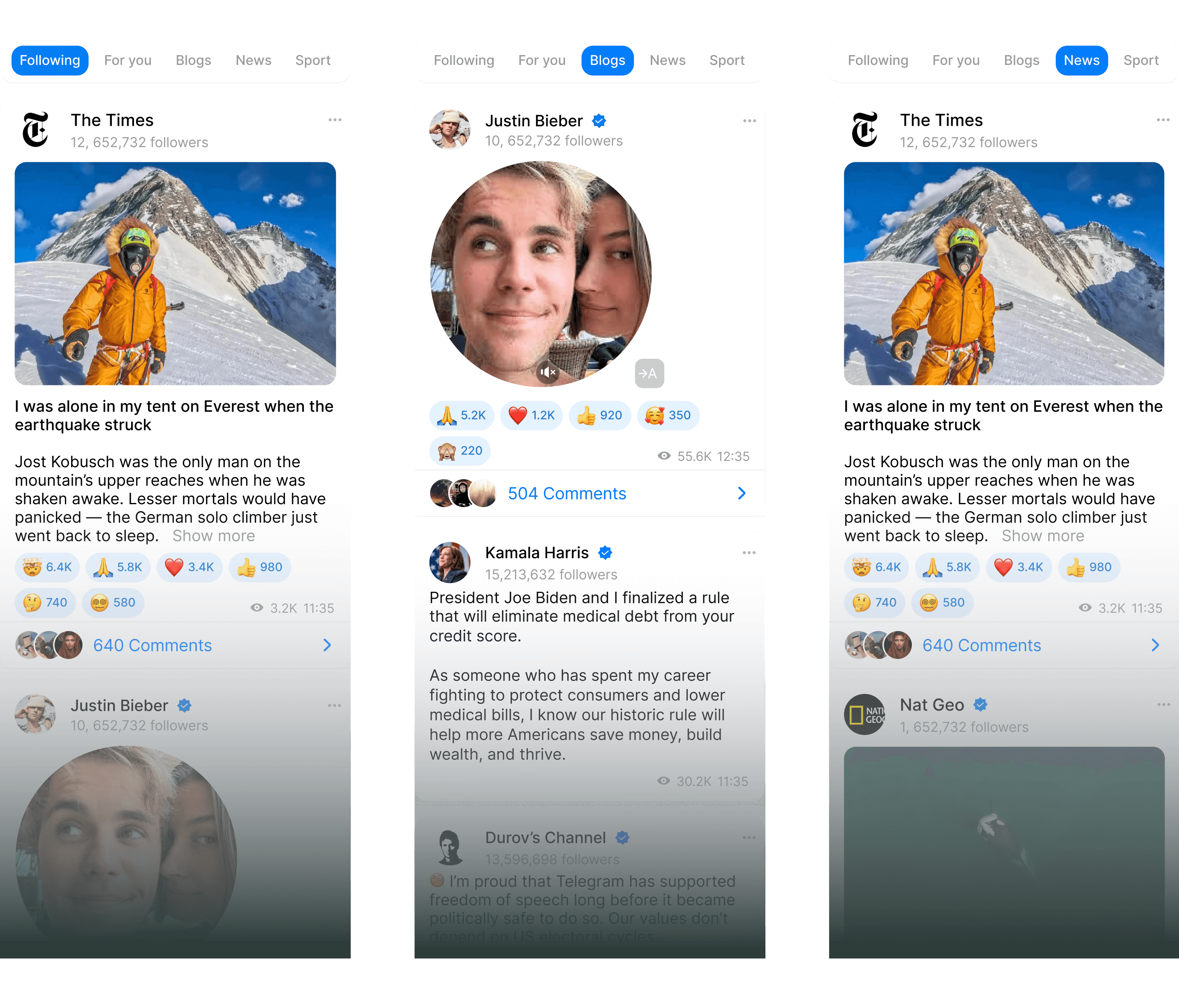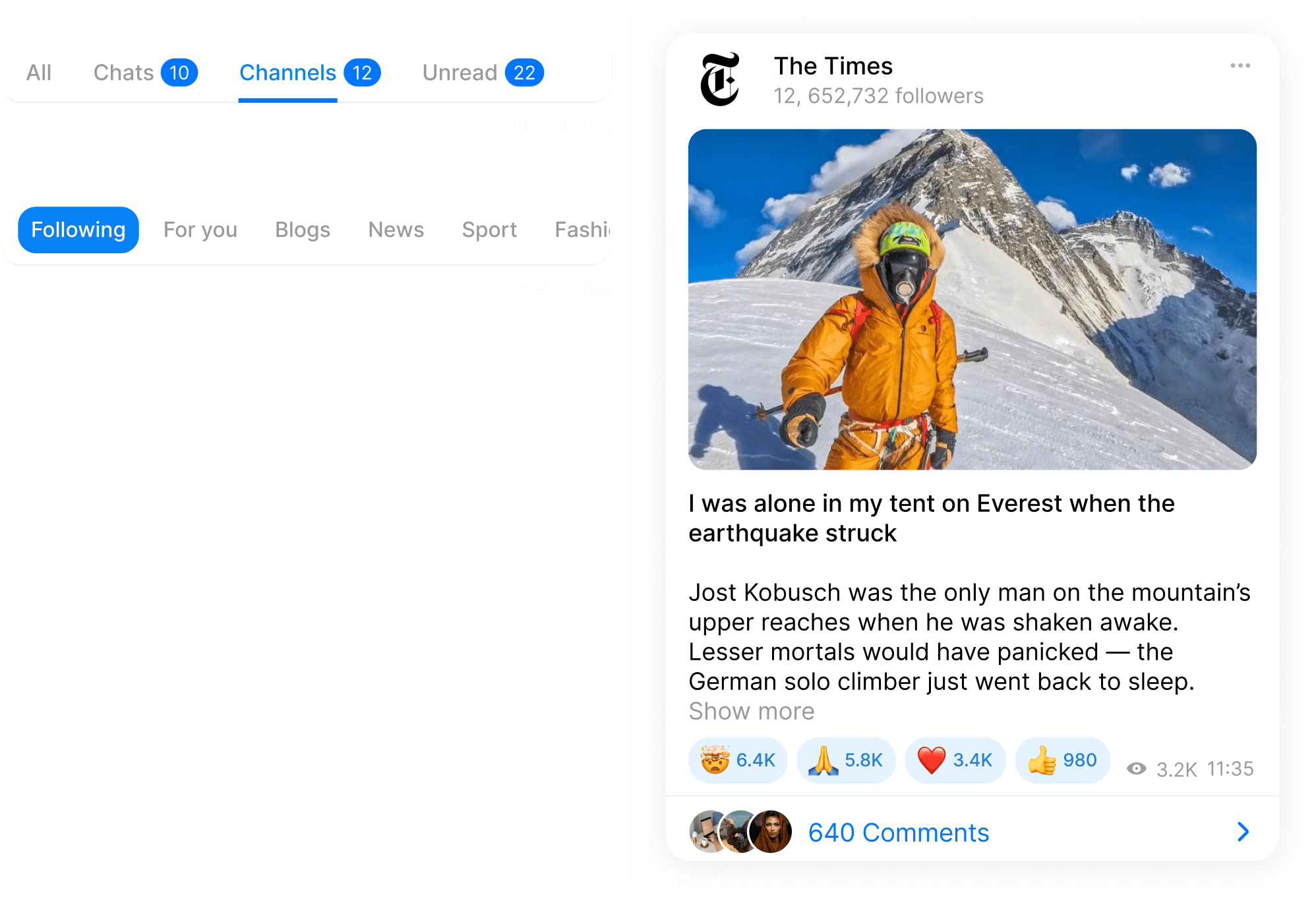 Following shows posts from followed channels